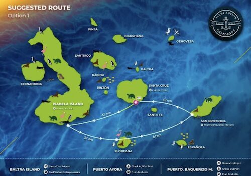 Javier arranged for Hawkeye to be cleared to sail into four islands, which is the most allowed, as shown below. To visit more/different islands you need to take a cruise ship. All cruise ships in Galapagos are based in Galapagos, so they are all relatively small.