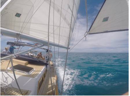 - Under sail in Caribbean waters. (c) Larry Tyler