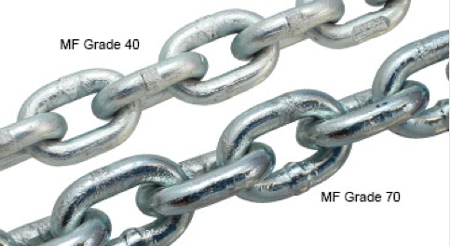 The Grade of the steel is directly linked to the linear strength of each link and, therefore, the break load of the chain.
