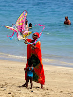 - Kite-flying on the beach in Mayotte.