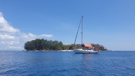 - SV Kelandria at anchor in Indonesia.