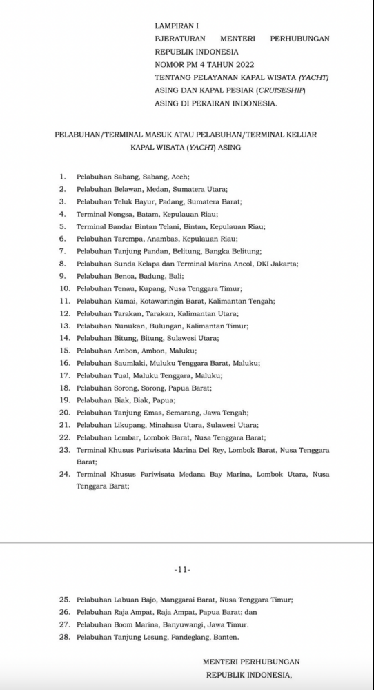 Indonesia Government Document for Yachts – Page 11 for Official Ports of Entry