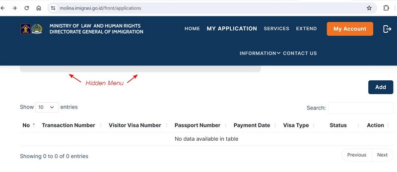 After getting to the “submit” part, the Transaction list was empty and I had submitted without paying for the visa. How do I pay for the visa?? None of the visible menu items, including “My Application” would show my application.