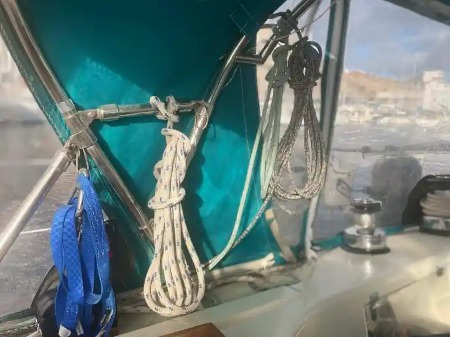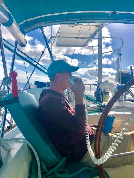 - Dan goes to the bow to take off the bridle and I take the helm.