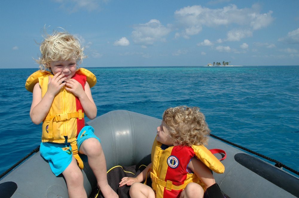 - Helen and Anna Laird, ages 4 and 2 in the dinghy in Belize.