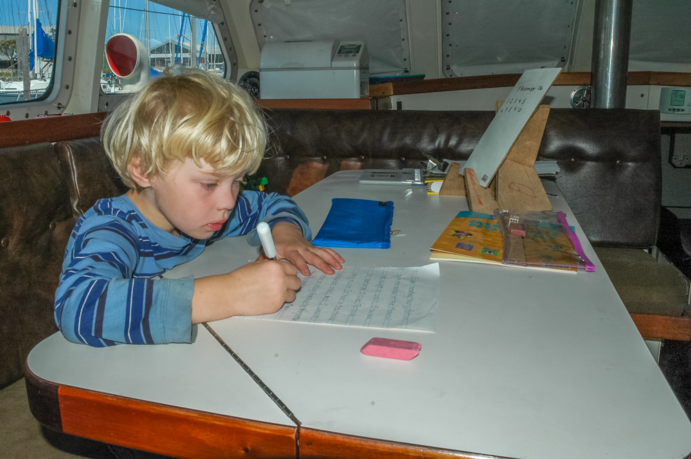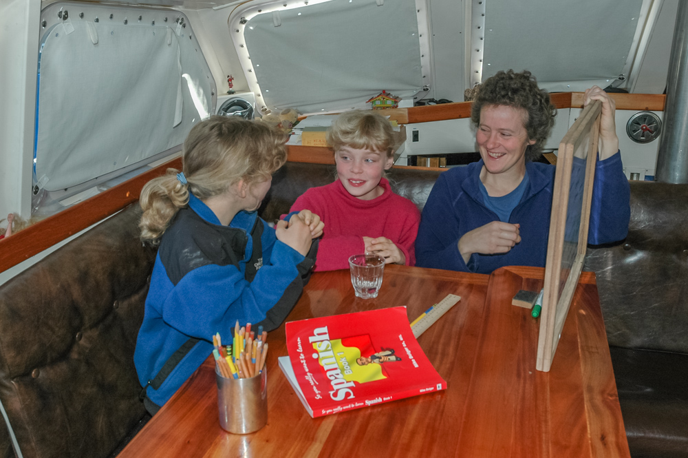 It can be helpful for parents to negotiate how rigidly they will adhere to school hours, so as to provide a united front. Is school M-F, 8-12, no matter what? Or do opportunities for snorkeling, fishing, visiting ashore take priority? We found it useful to have school 7 days a week, which meant that if there were interesting things to do, we could take a day off whenever we felt like it.