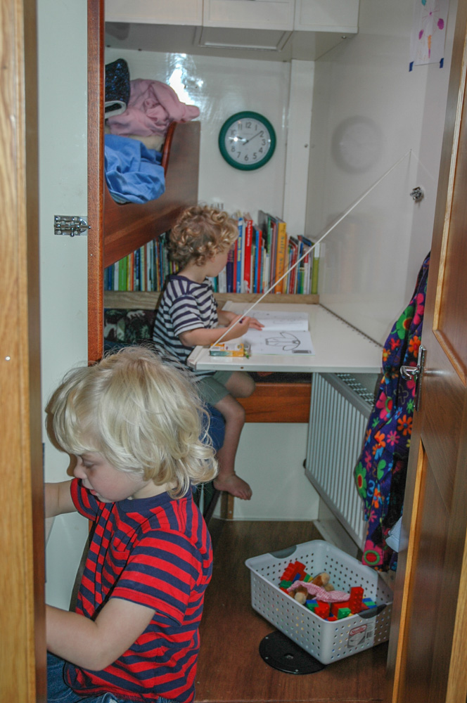 Up until age 12, I found that if they were not doing the work, the problem could usually be solved by my stepping in and looking over their shoulders. I was extremely careful not to threaten punishments that I wasn’t willing to follow through with or that would actually punish me instead. (I did this once – I kept our younger daughter on board in the afternoon to finish her school work, while my husband Hamish took the elder for a trip to town. It was a good lesson for me: my daughter didn’t care about staying on the boat, and I did!)