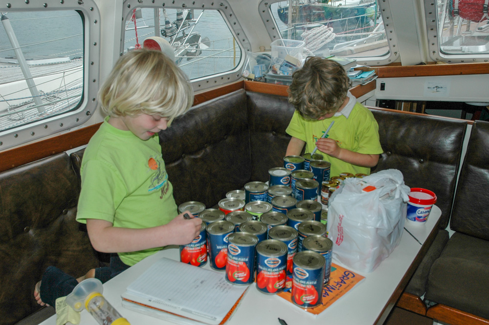 In elementary school, almost every moment of school needed supervision and encouragement, so we had school every morning, more or less from eight until noon. Most boat kids follow a similar schedule. In middle school, it took a bit longer, but since literature was entirely unschooled, they fit that in at other times of the day. I felt they should read for pleasure for a minimum of thirty hours a month, but I didn’t care if that was in chunks of five hours or an hour a day. For most boat kids, that is an easy goal to meet. We met only one boat child who never chose to read, and this was unusual enough that her parents chose to have her professionally evaluated; she was profoundly dyslexic and needed targeted teaching to overcome it. (This particular family was heading to shore anyway, so she developed her reading skills in school, but many families successfully homeschool children with learning difficulties.)