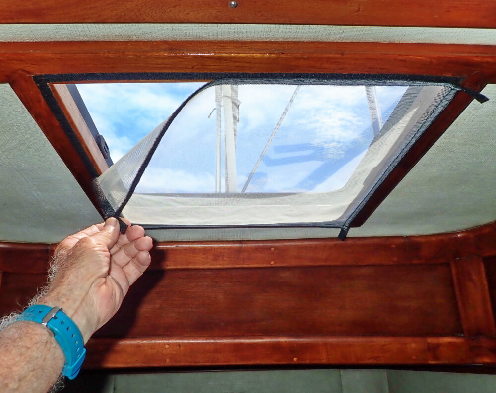 - Mosquito screens are easy to install on hatches, port holes, and companionways