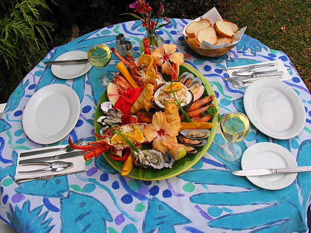 - The Sea Food platter in a sea side restaurant with fish, lobster, oysters, mussels and shrimp. Safe and delicious or not? Gambling with your health: minimum payoff of nice tastes if you win, maximum payoff months of misery if you lose