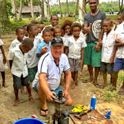 - Yachtsman Mark Rolle repairing the Uliveo village solar powered desalination in the Maskelyn Islands of Vanuatu. He got it working again, producing 180 lpm of quality water.