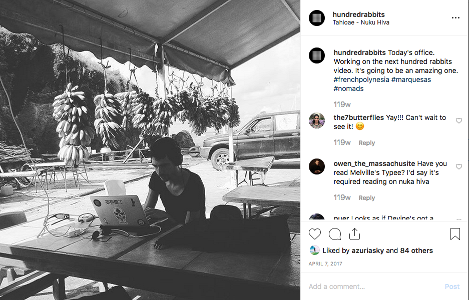 They operate a small research studio called Hundred Rabbits, where they do experiments in resilience and self-reliance using low-tech solutions.