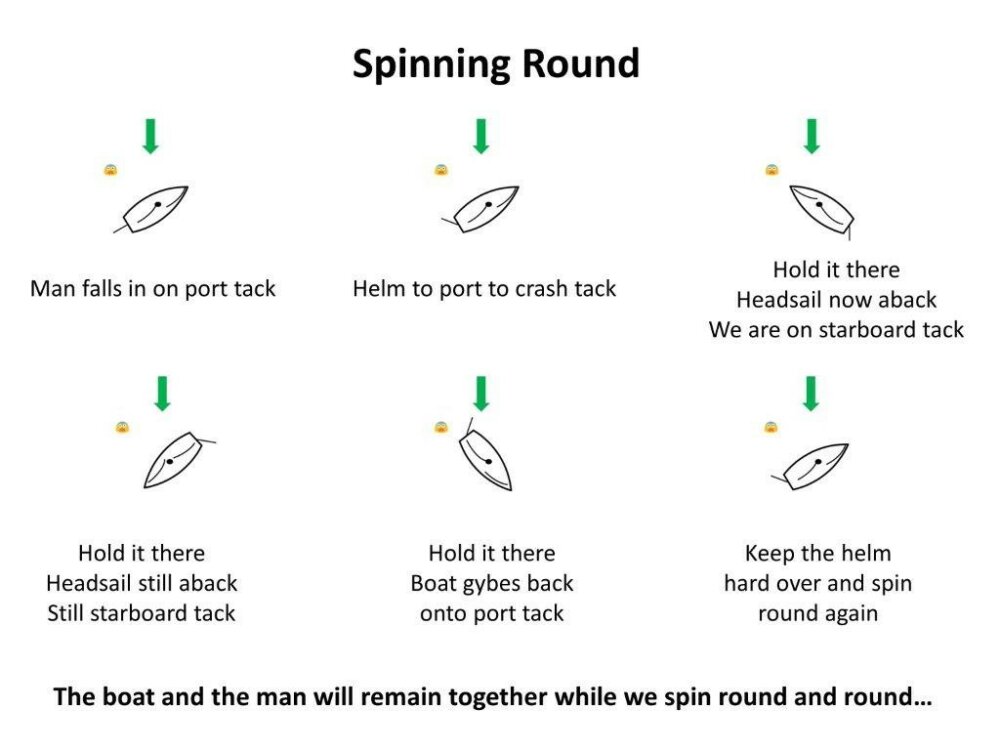 Why are we spinning round? Because we don’t want to lose sight of the MOB, we want to stay with him and we will if we keep spinning round. Both of us will drift with the tide or current.