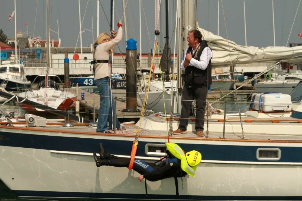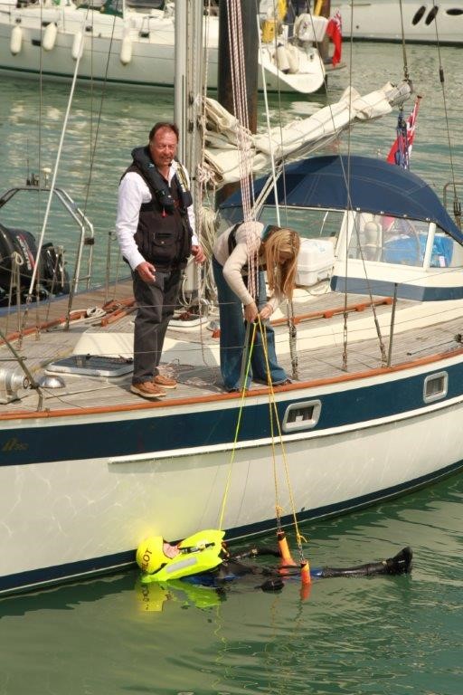 There are many ways of retrieving a man back on board, this is just one. Whatever you do you need to find a system and prepare it and practise it, in the hope that you will never have to use it.