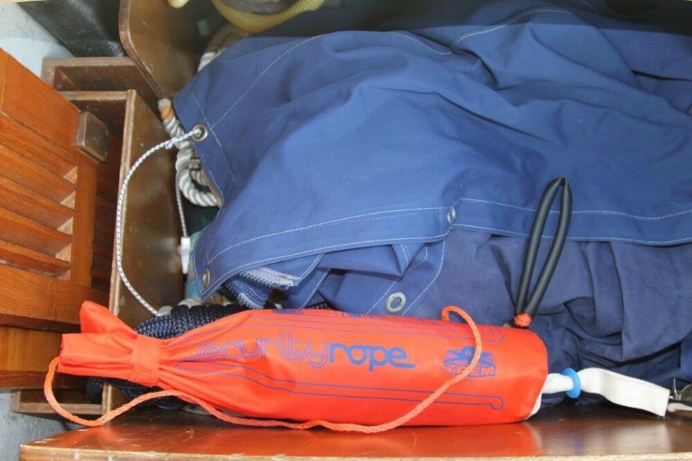 We can see him and we are near him so my first move is to throw the throwing line at him which I keep in a cockpit locker ‘on top of everything, ready’.