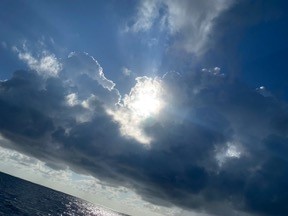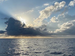 This piece came to me when we had been out on the Pacific for some days. It started out with a cloud that caught my attention. It was like a follow up and bridge from our Atlantic crossing.