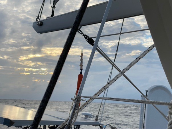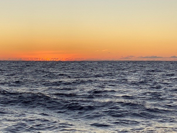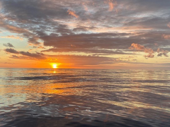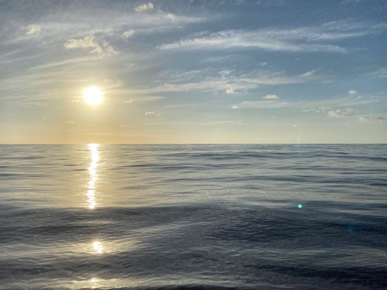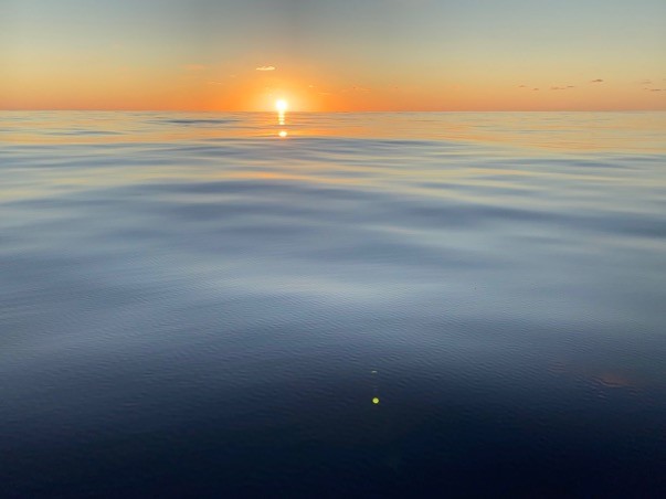 Woke up to the sunrise. So calm. Since 2 AM we have been drifting without sail or motor.