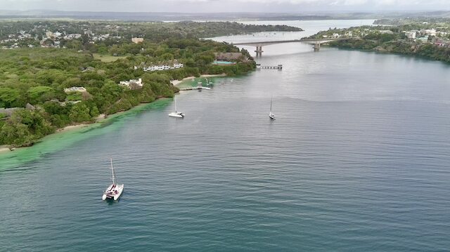 For vessels that have an air draft of less than 18 meters, you should be able to get under the power lines and bridge in Kilifi to anchor or moor down nearer to the boat yard.