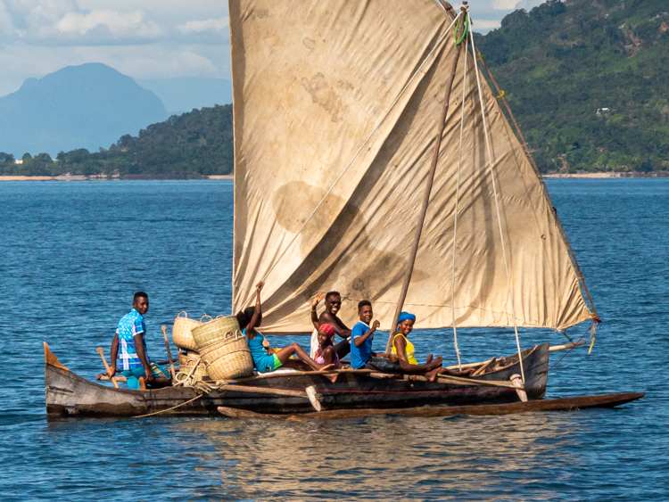 We landed on Nosy (island) Be on August 13 at the port of Hellville. After our early morning arrival, at 10am we met our “agent” Christoph, who isn’t really a qualified agent but is a very nice Malagasy fella who may have helped us with our paperwork ahead of our arrival. He took a copy of our “Authorization” and disappeared for an hour, before returning to say (in French), “Hang tight, I’ll be right back.” Another hour waiting in the dinghy. At noon, Christophe returned to say he had made an appointment with all the officials to visit our boat at 15:00 – “Please return then.”
