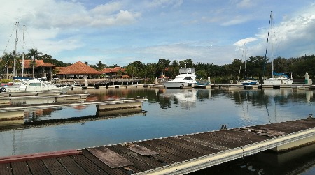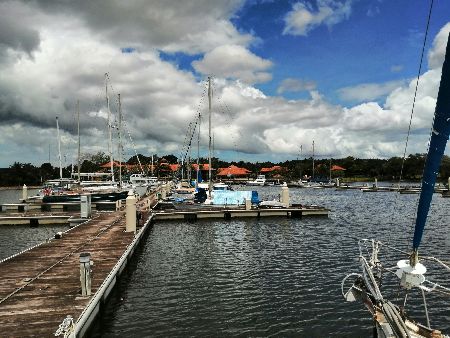 There are few boats using the marina at the present and no-one living aboard. The marina is so well protected inside the river that the boat is safe from bad weather. The security guards are vigilant so your boat should be safe from theft. The personnel is very nice and will do their best to make your sojourn agreeable.