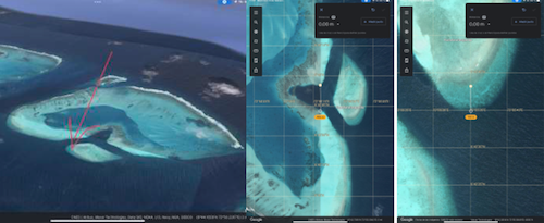 Entrance – We entered to this 75 miles large atoll from the north between Keela Kandu and Vashavaru. Use Google Earth. The channel is deep and free of danger, but we had 3kt of currents against. Then we turned E for entering to the Dahapparu atoll from the N, which is easy, there is a sand bank of 4 meters in the wide open northern entrance. Once inside, you can anchor wher ever you want.