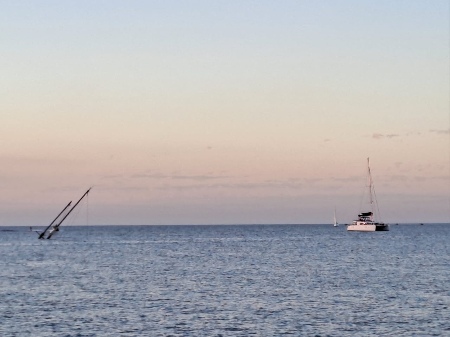 We were able to anchor in the Dzaoudzi Anchorage and managed to avoid the unmarked wreck jutting out of the water in this area.