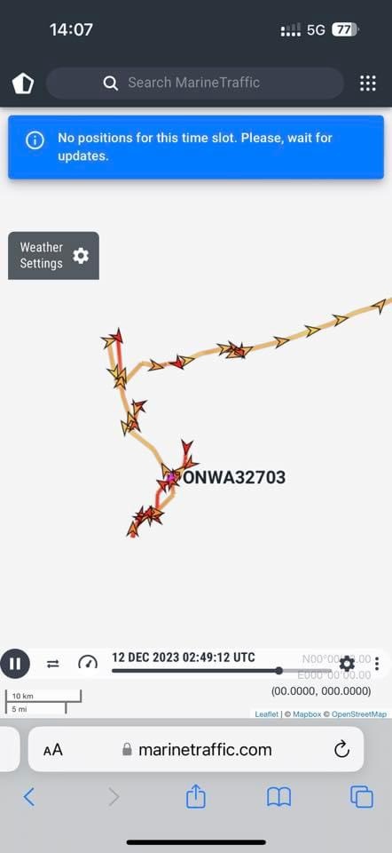 Later that same day around 1900, after the sun had set, I was checking AIS again and I noticed a vessel with almost identical details to the one earlier. The only difference was one digit in the name (see photo below).