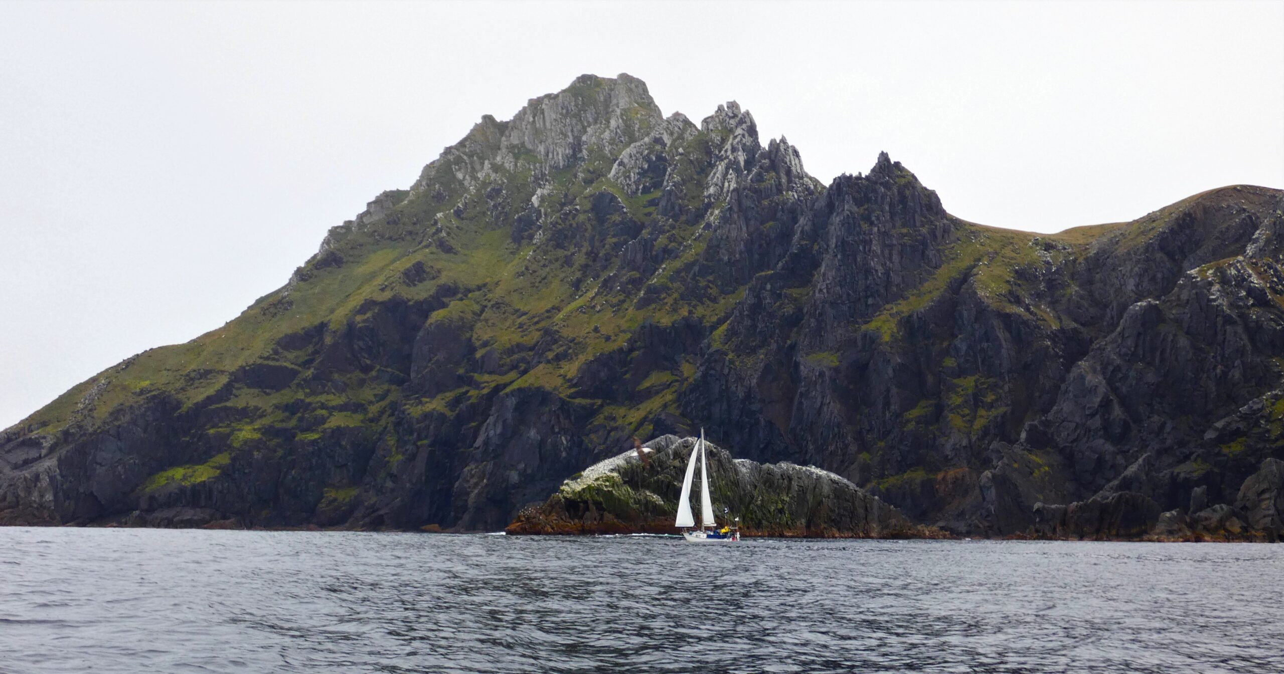 The weather was good and we were off, sailing ‘Round the Horn’. In reality this involved circumnavigating the island, not a TRUE rounding from west to east or east to west. The weather was perfect and I got into the dinghy with its 2 horse power outboard “Pam” and took photos from the Drake Passage, of Kiwi Dream sailing in front of Cape Horn!