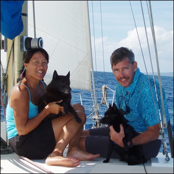 Luc Callebaut and Jackie along with their three dogs have been heading for French Polynesia “the other way” – having left the Phillipines in 2025 to head eastwards.
