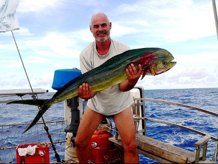 Tony with a Mahimahi caught near Huahine in the Society Islands of French Polynesia. (c) Tony Foulkes.
