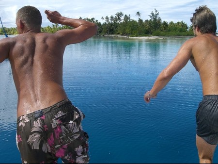 Jumping off the yacht in a Pacific anchorage. (c) Tony Foulkes.
