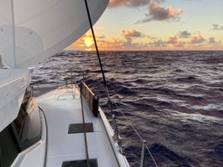 Sailing in the Atlantic Ocean.