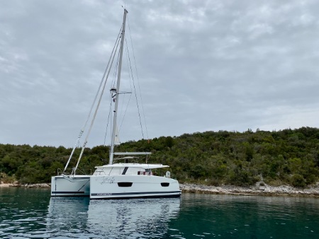 We went to see some catamarans in a size which we could afford. We went to Boat Shows in Tulln, Düsseldorf, La Grande Motte. Also we had been advised by Charter Companies about the strengths and weaknesses of different types of catamarans. A salesman in France told us, that Pitter yacht charter in Croatia has an excellent reputation in maintenance of their fleet and so we went to see Klaus Pitter. Pitter yacht charter bought the boat with the features we wanted with their buy charter model. It was fully booked for two seasons in Croatia and earned back a significant amount of money. Also we could sail with it and it was well maintained.