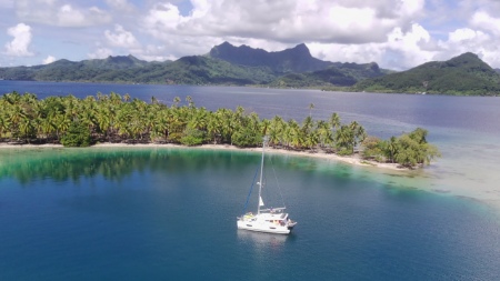Infinity anchored in Raiatea, French Polynesia