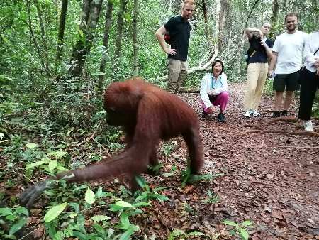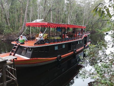 Just as we finished anchoring, a small motor launch with Lisa and Majid came to welcome us and offer a river tour to Tanjung Puting National Park to see the orangutans. Perfect! It saved us time finding where to go. This nice couple have been operating a small backpacker hotel and river tours for many years and help cruisers with markets and fuel provisioning.