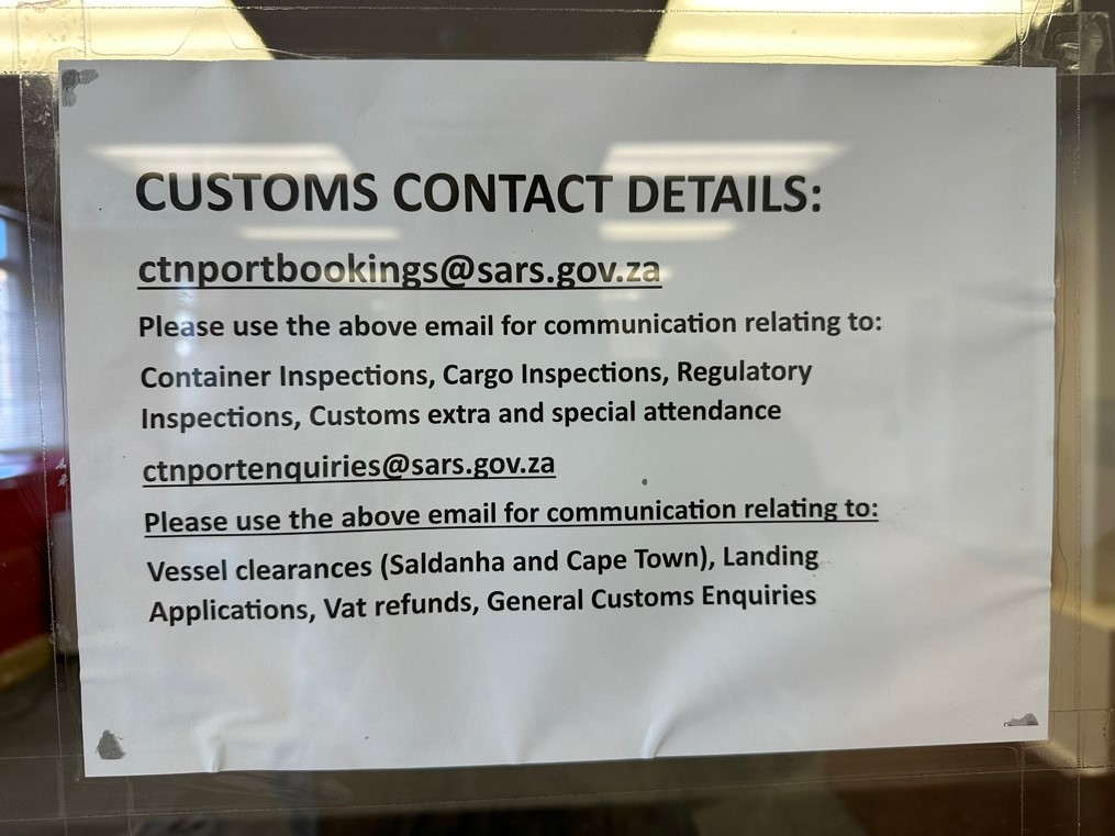 Same procedure if you are berthed at the Royal Cape Yacht Club.