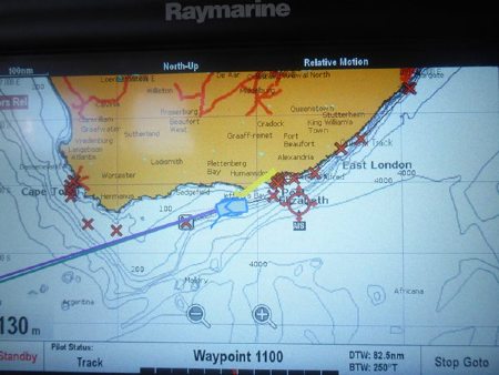 The section from Durban to East London is known as the “big black hole” due to the lack of lights on shore along the Transkei coast and the number of vessels it has swallowed. There is no place to hide!!