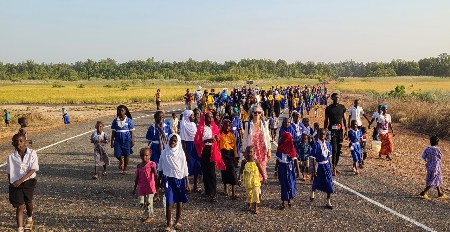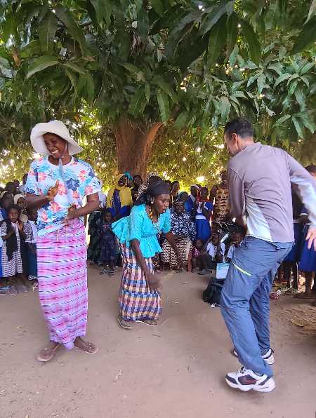 We participated in a jubilant riverside dance circle before joining a procession into the town, where we were introduced to the village Iman and Chief.