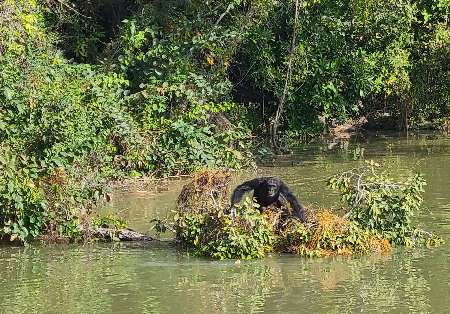 It’s not unusual to see dolphins, crocodiles, hippopotami, chimpanzees, and other monkeys from the deck, and all you have to do is look up to see an eagle-owl or violet turaco in this world-renowned birding destination.