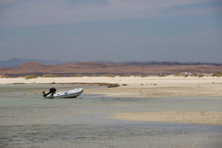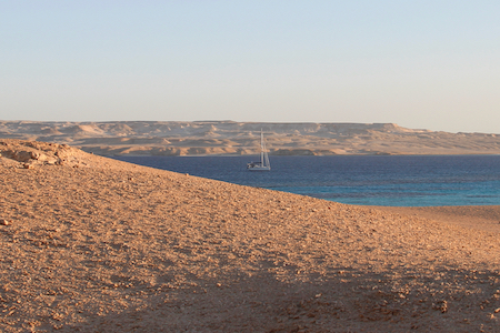 We anchored just on the south side, behind the tiny sand spit. Good holding in 4 meters of sand. Perfect protection with northerly winds, with southerlies you can move to the other side (but we didn’t have to). Behind the dunes of the coast of Sudan there are several lines of mountains giving an amazing panorama. We went with the dinghy to the sandy island, walking around and enjoying the sunset. Really a great spot! In the morning we tried to go to the coast by dinghy, but around 100m from the shore its too shallow and you can’t land and go for a walk.