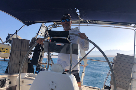 Hans from Switzerland and Imma from Barcelona have been sailing around the world slowly since 2011 on their Dufour 40 Performance “Tuvalu”. So far they are sailed 50,000 nautical miles (as of 2023), with hopefully many more ahead.  They are currently in Greece.  Hans is writing a book about their travels, which he hopes to publish next year.