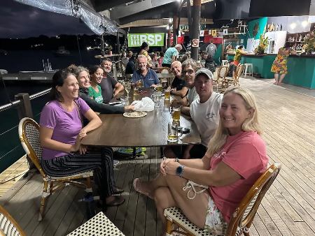 David, who lives on the island with his family, usually holds a dinner for cruisers on a Saturday at 6pm. Advance notice is required as he will go shopping in his boat to Neiafu the day before. There were many dishes, but the roast piglet was disappointing as there were 20 people and only enough for a small amount for each person. Take your own drinks. Cost was 100TOP per person. David also sells fruit which you can buy.