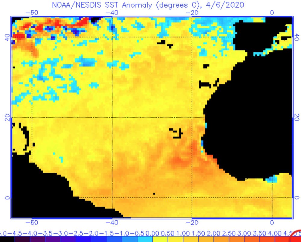 Above average SSTs suggest slightly higher than normal risk for an early season W-ward propagating WAVE to spawn a Tropical LO impacting the Caribbean (recall Tropical Storm Brett which hit Trinidad June 19, 2017).