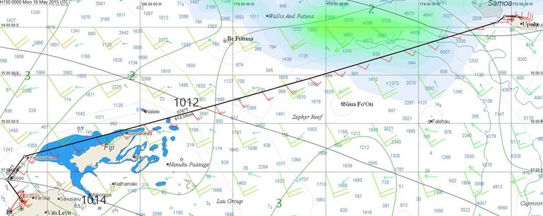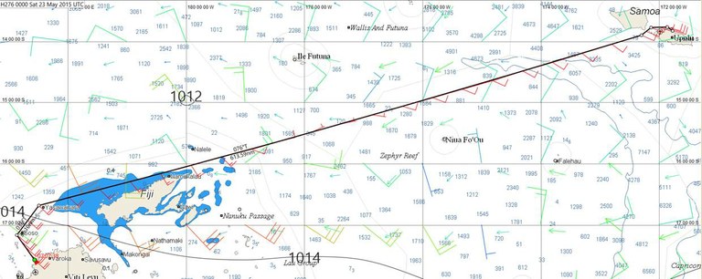 Below, for those interested, I have inserted a copy, verbatim, of an email, received on the 12th May where I have asked Bob for his long-range thoughts about the weather for our trip from Fiji to Samoa.