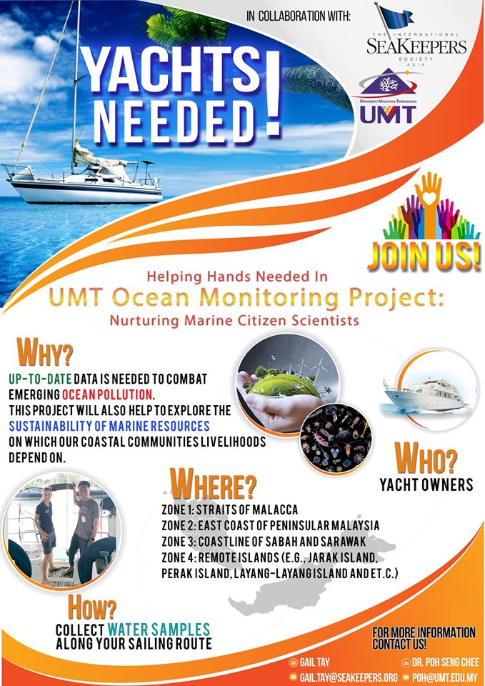 The International SeaKeepers Society, Asia in a collaborative project with the Universiti Malaysia Terengganu (UMT), is looking for interested Yachters and Yacht Owners to collect data through water samples within the waters of Malaysia.